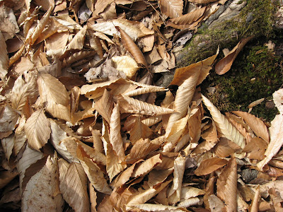 Last year's leaves and this year's moss at the tree's base.